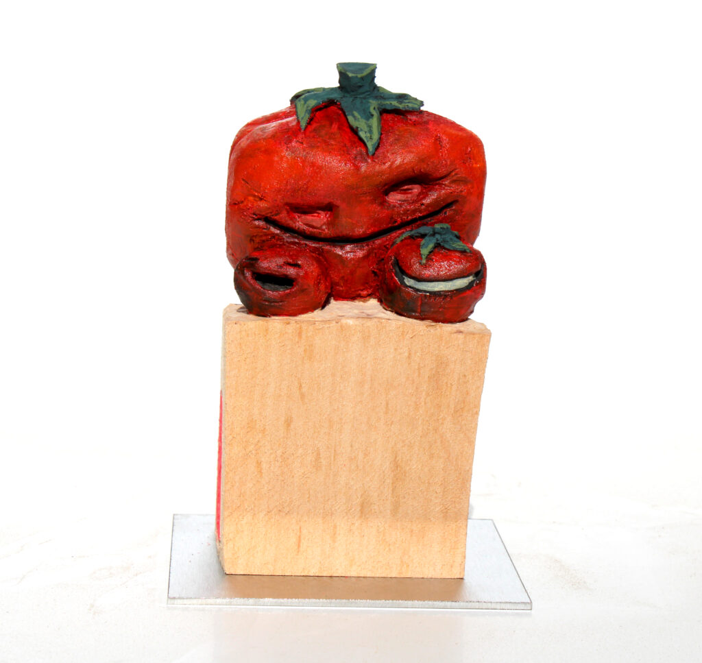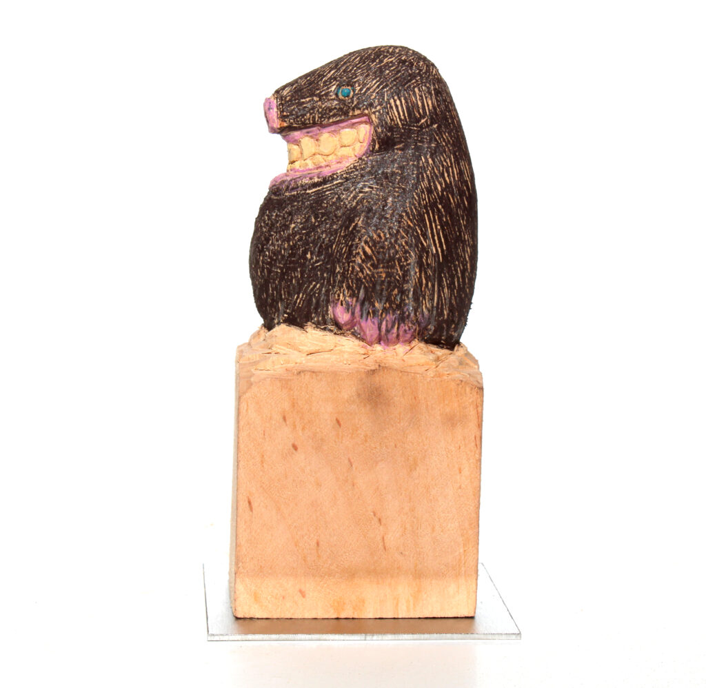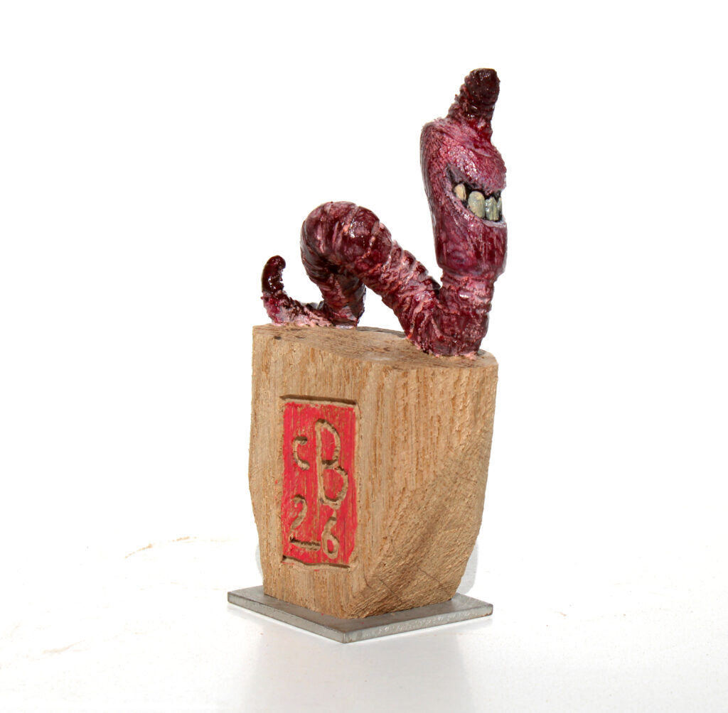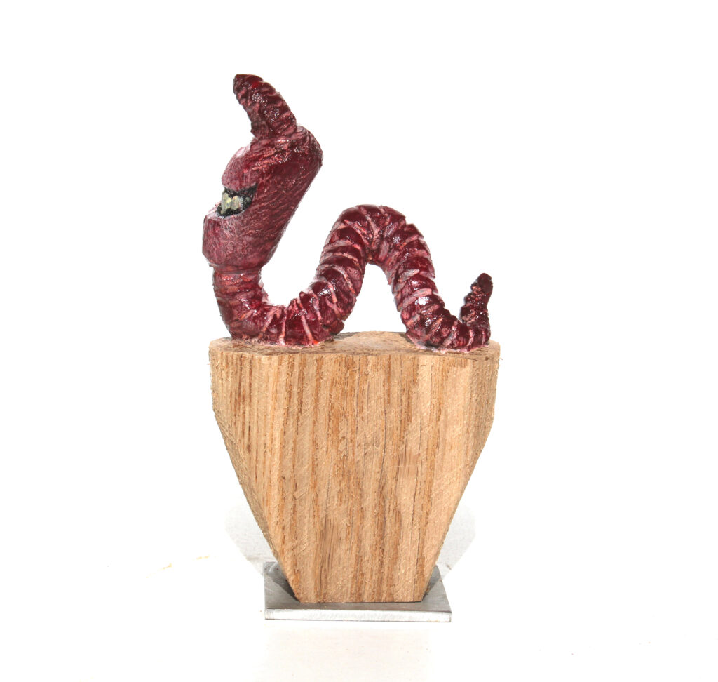 Erlenholzskulptur; Lack; Marker; Bodenplatte aus Metall