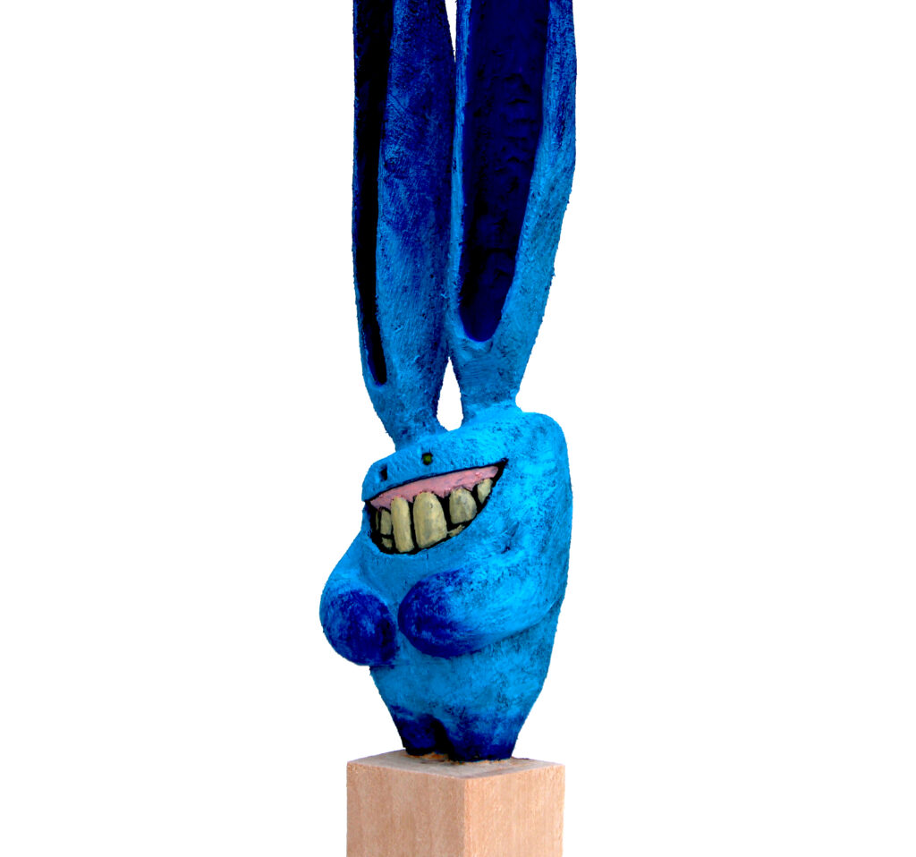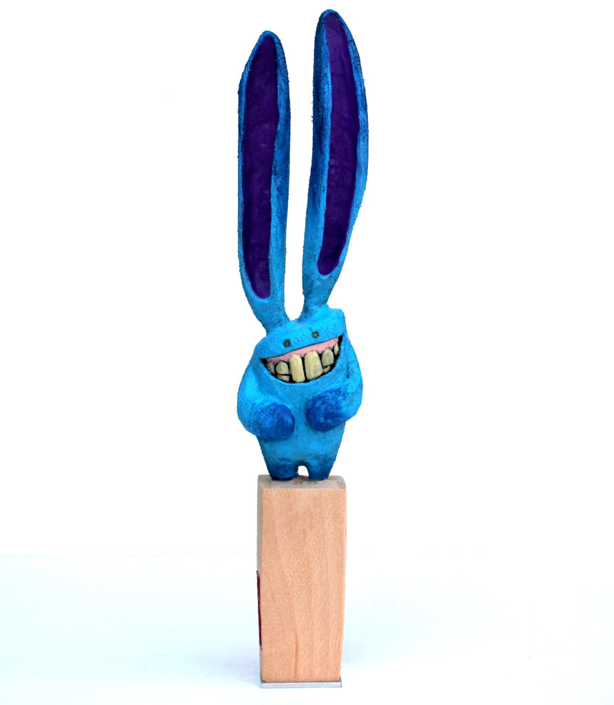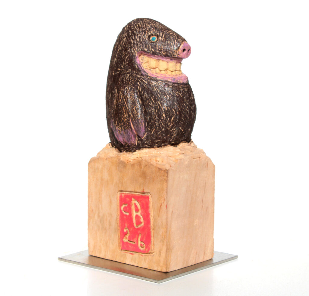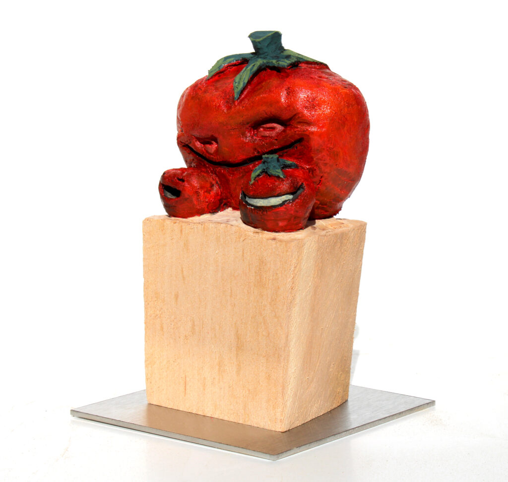 Erlenholzskulptur; Lack; Marker; Bodenplatte aus Metall