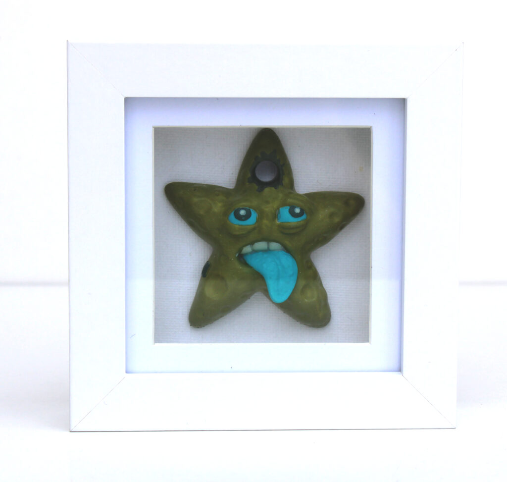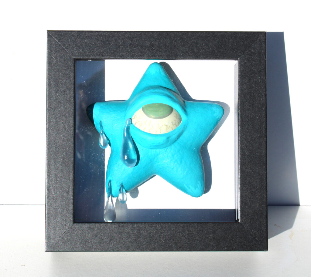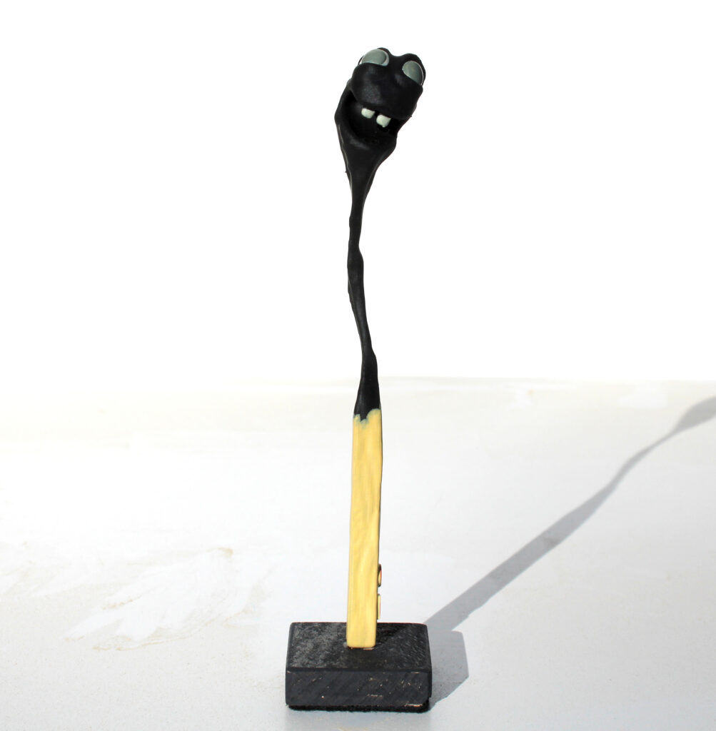 Erlenholzskulptur; Lack; Marker; Bodenplatte aus Metall