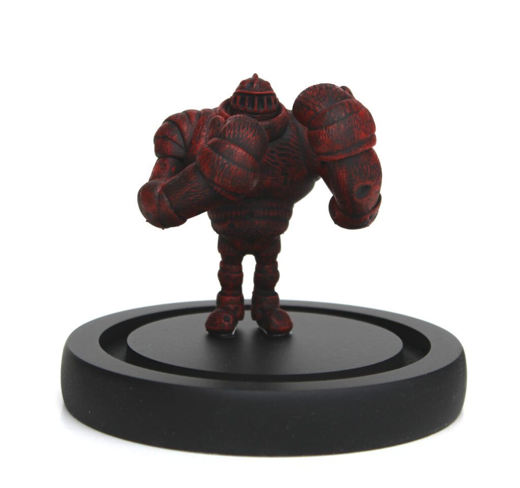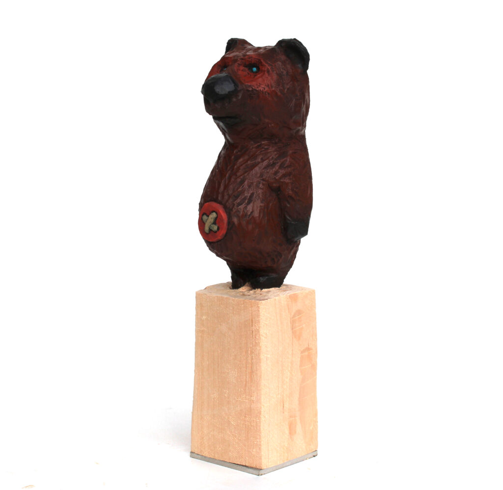 Lindenholzskulptur; Lack; Marker; Bodenplatte aus Metall